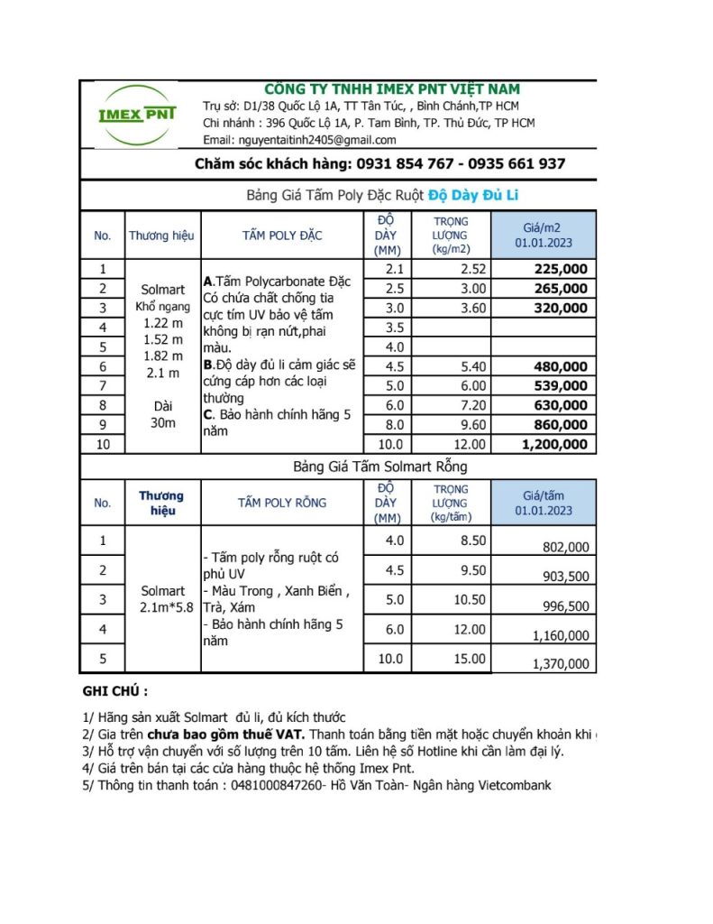 Thông tin chi tiết trong bảng giá giúp bạn lựa chọn đúng tấm lợp poly lấy sáng cho ngôi nhà của mình.