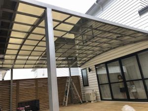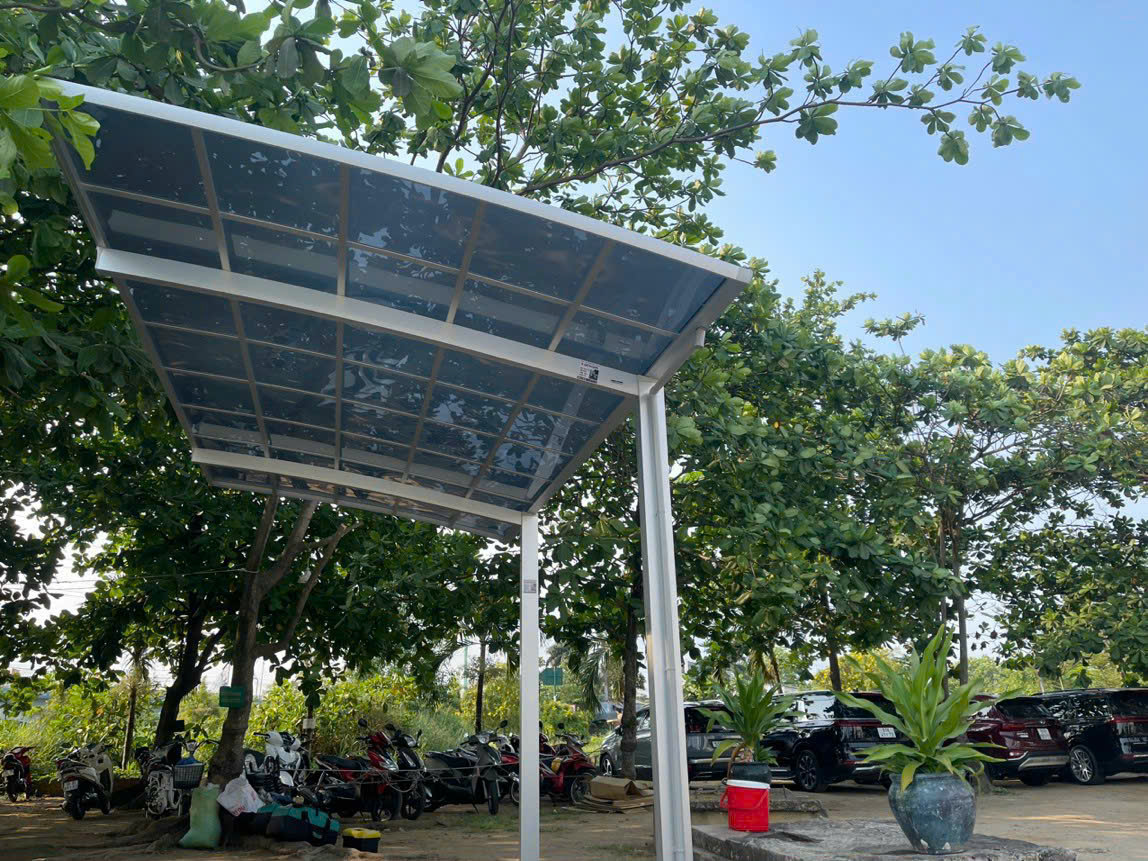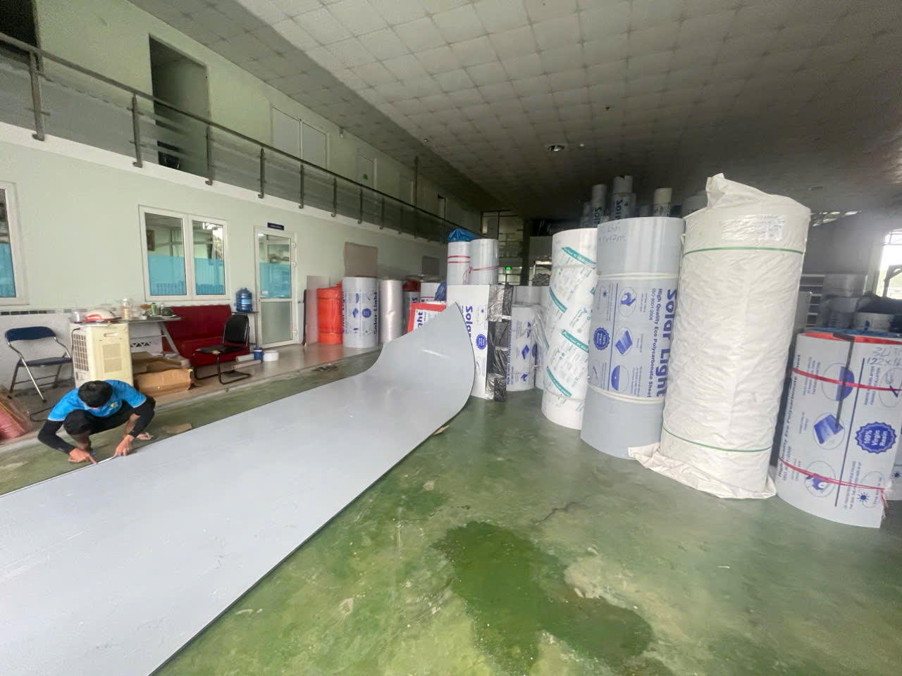 Tấm lợp lấy sáng polycarbonate đặc ruột ngang 2,1 mét dài 30 mét sử dụng làm mái che ,mái hiên ,giếng trời